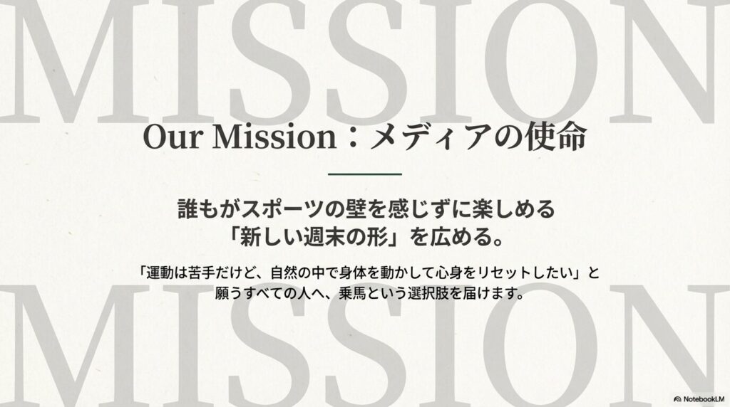 ただのレジャー情報をまとめるだけでなく、休日の新しいライフスタイル、そして自己肯定感を高めるための「心と体のリトリート(回復)」としての乗馬文化を、日本中に定着させたいと考えています。
